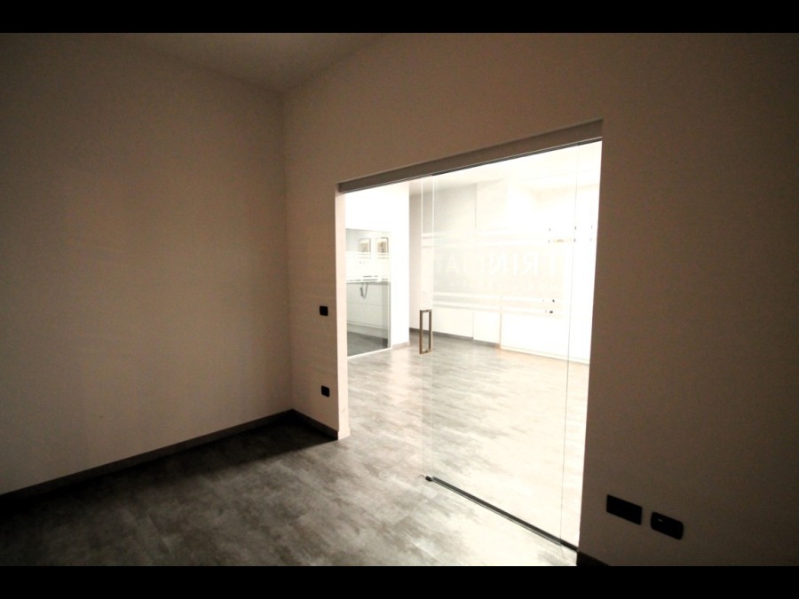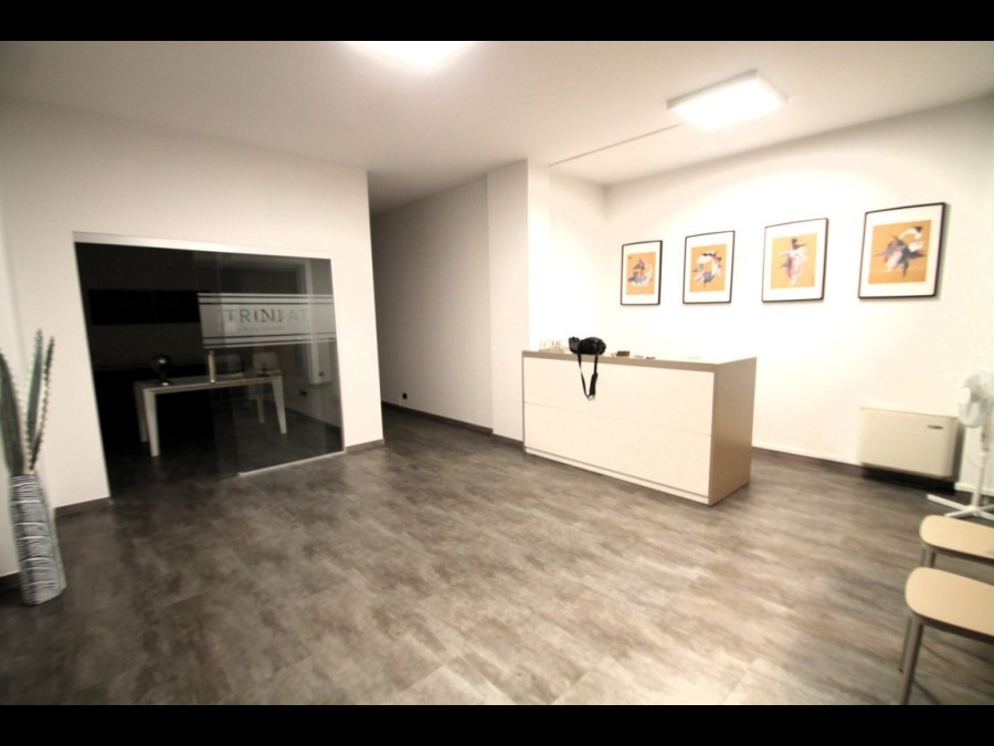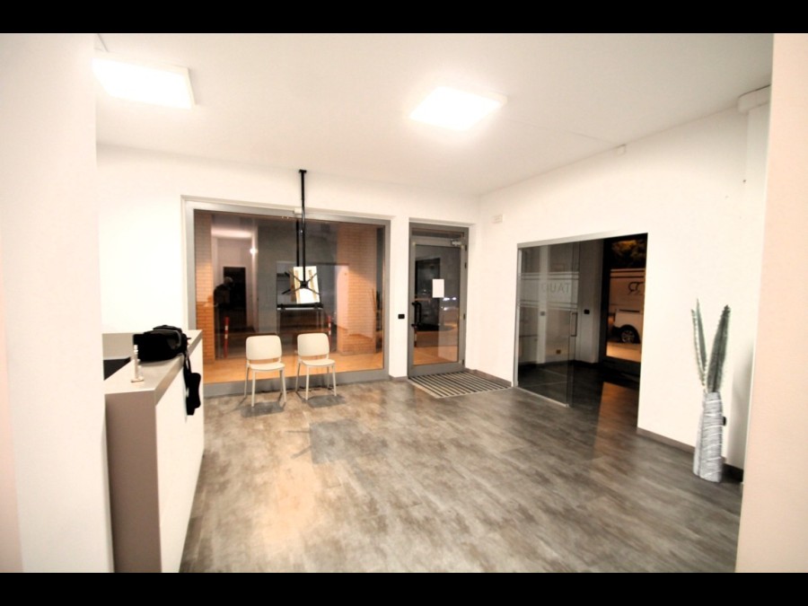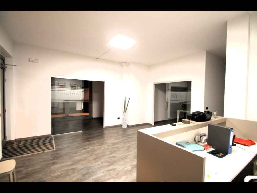 Composto da: ingresso nella reception, 2 studi a vista divisi da pareti vetrate, disimpegno, sala riunioni, altri 2 uffici muniti da ingresso e bagno con antibagno, vetrina su strada
